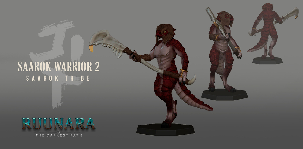 The warrior Saarok is part of the enemy team. Fight them with your heroes Ardann, Sanbari or Kangara. The warrior is the basic, most common unit.